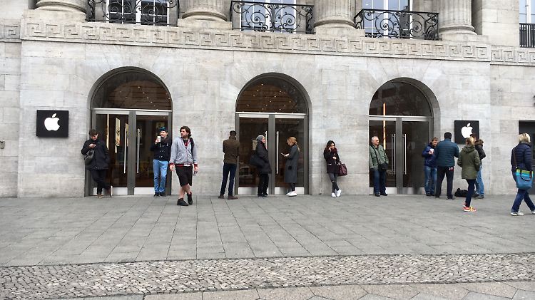 Mit der Zeit versammeln sich immer mehr Kaufwillige vor dem Tesla-Store am Kudamm in Berlin.