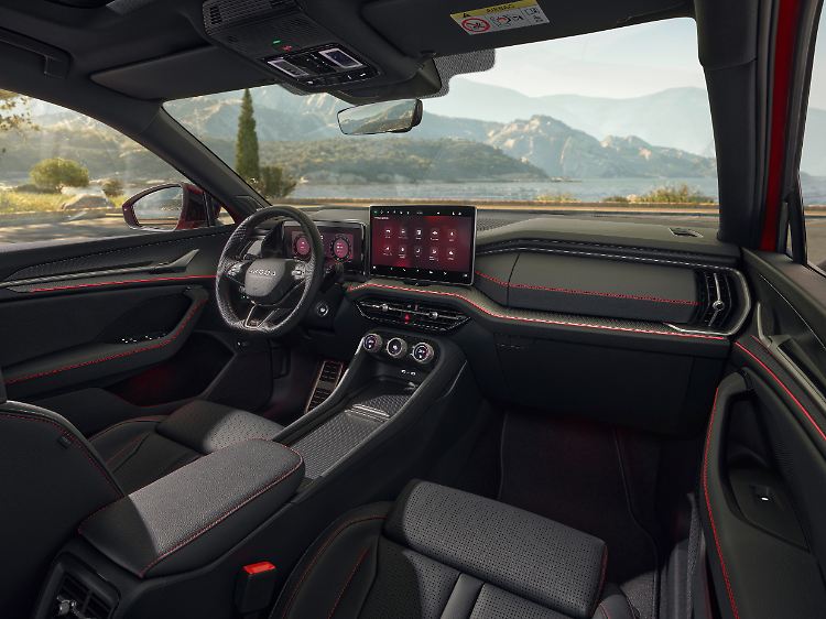 Außerdem lassen getönte Scheiben, schwarze Karosserieteile, dunkle 20-Zoll-Räder und ein markanter roter Reflektor quer übers Heck den Wagen etwas böser aussehen. Neben dem Bling-Bling geben die Tschechen ihrem Sport-SUV aber auch Sinnvolles mit auf den Weg: Scheinwerfer mit Matrixtechnik, die ihre Leuchtdioden verkehrsabhängig ein- und ausschalten und die Straße besser ausleuchten als normale LED-Scheinwerfer.