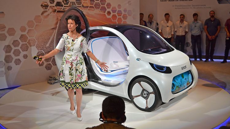 Zudem zeigt das Showcar, wie sich Smart das Carsharing der Zukunft vorstellt. Bestellt wird das Fahrzeug - auch heute schon - über ein mobiles Endgerät. Allerdings muss sich der Entleiher heute noch selbst zum Wagen bewegen. In Zukunft wird der dann eigenständig vorfahren. Auch die Fahrzeugfunktionen werden über das Smartphone gesteuert. Und da die Technik Zugriff auf die personalisierten Daten des Kunden hat, sind auch die Farbwelten, Informationen und Entertainment-Angebote genau auf den Einzelnen zugeschnitten. Wer das Auto mit anderen Passagieren teilt, spart bares Geld oder erhält für zukünftige Fahrten verwertbare Credits.