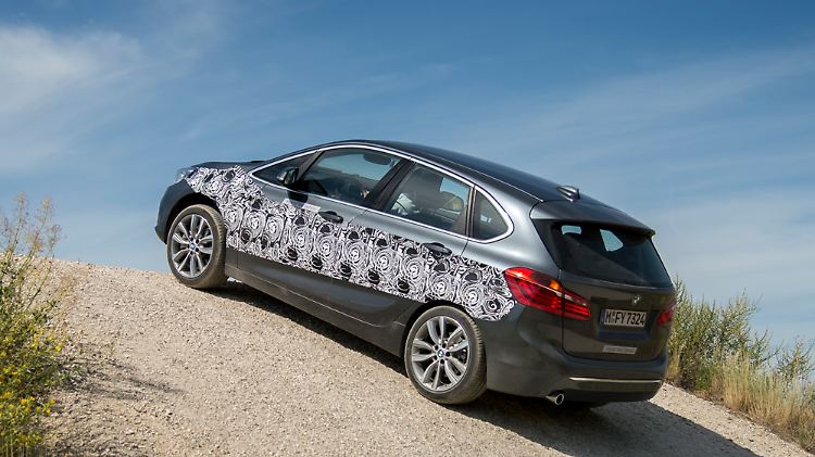 An den Prototypen, der jetzt zur Testfahrt auf der Versuchsstrecke im südfranzösischen Miramas unterwegs sind, sind die Modellbezeichnungen sorgfältig abgeklebt. Wie das Auto heißen soll, ist noch ein Geheimnis. "Ein ,xDrive’ am Heck würde ich mir wünschen", sagt Projektleiter Uwe Seitz, auch wenn er weiß, dass daraus wohl nichts wird. Dass der Elektro-Zweier einem "xDrive" alle Ehre machen würde, ist am 50-Prozent-Steigungshügel zu sehen. Energisch und gradlinig klettert der fünftürige Van ohne Traktionsprobleme die Anhöhe hinauf.