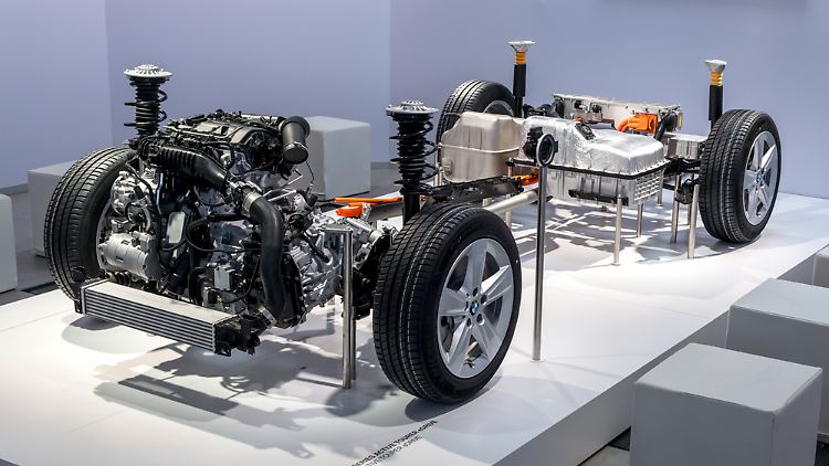 Für Entwicklungschef Klaus Fröhlich steht beim 2er Plug-In-Hybrid "nicht das Auto selbst im Vordergrund, sondern seine Architektur". Der Antrieb hat sein Vorbild im i8, ist aber in entgegengesetzter Richtung eingebaut. Das heißt, auf die Vorderachse wirkt ein Verbrenner, auf die Hinterachse ein Elektromotor. Die mit vielen Neuteilen konstruierte Antriebseinheit mache ihn quasi zu "einem i8, der sehr schnell rückwärts fährt". Durch die Doppelmotorisierung wird dieser 2er zum Allrader.