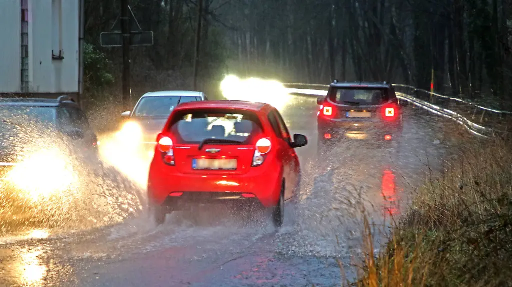 Das ist auch ein Grund, generell auf derart überschwemmten Straßen nicht weiterzufahren. Zudem können Autofahrer die Orientierung verlieren, wenn wegen stehenden Wassers der weitere Fahrbahnverlauf nicht mehr abzuschätzen ist.