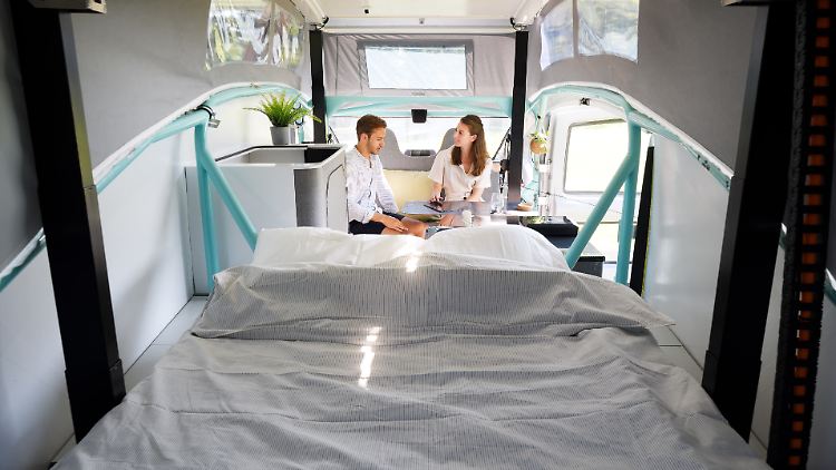 Der Clou aber sind die Solarzellen mit einer Fläche von 8,8 Quadratmetern, die auf dem Dach angebracht sind und auch während der Fahrt Strom für den Antrieb generieren. Ist man auf einem Zeltplatz, lassen sich seitlich unter dem Dach zusätzliche PV-Paneele ausfahren, die eine noch größere Stromausbeute garantieren und zugleich als Vordach dienen.