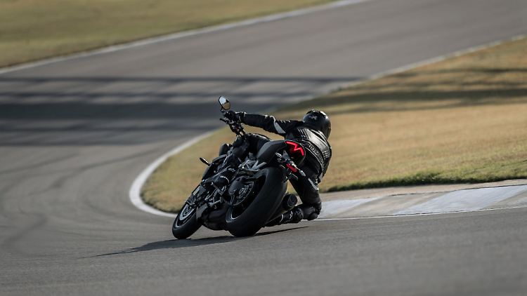 So gerüstet fühlt sich der Fahrer der Speed Triple 1200 RS auch auf kurvige Landstraßen pudelwohl: Alles passt, die Sitzposition lässt auch längere Etappen zu, das Handling der Triumph ist klasse. Kurven durchzieht sie stoisch, liefert immer das nötige Feedback und zeigt, dass die Summe der hochwertigen Einzelteile ein fulminantes Ganzes ergibt. Die bereits erwähnte gute Dosierbarkeit der Bremsen sowie die je nach Fahrmodus früher oder später eingreifenden Assistenten (inklusive Kurven-ABS) setzen dem Vorwärtsdrang wirkungsvoll Grenzen. Auf Autobahnetappen muss man sich freilich zusammenfalten, um - mangels Verkleidung - dem Wind nicht zu heftig ausgesetzt zu sein.