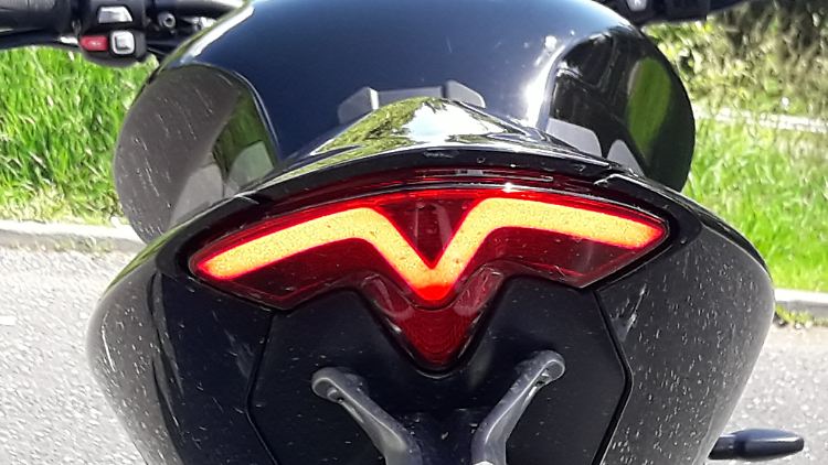 Auch die Rückseite der Triumph Speed Tripple 1200 RS kann sich mit ihrem LED-Licht sehen lassen.