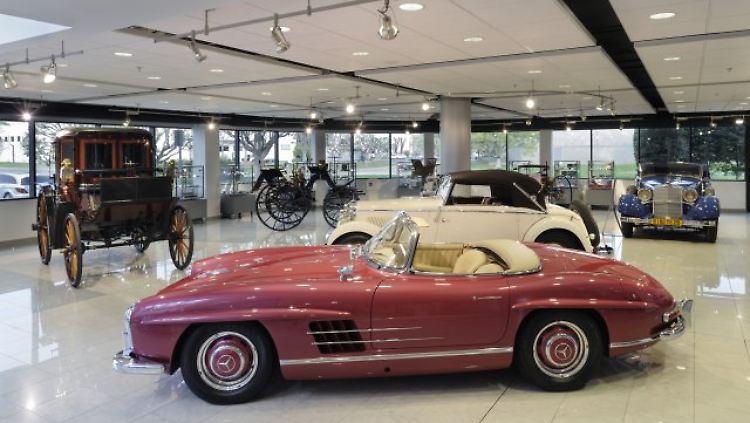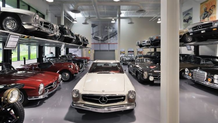 In Hochregalen so schmucklos wie in der Modelhalle von Ikea sind sicher und säuberlich die Flügeltürer und Roadster der letzten Jahrzehnte gestapelt. Es parken dort auf zwei Etagen 600er und 300er, Limousinen jeder Ära und immer wieder Cabrios, wie sie die Amerikaner lieben. Manche Autos sind auf Hochglanz poliert, manche tragen eine feine Staubschicht - mit am schlimmsten sieht ein beiger Flügeltürer aus, den ein Kunde vor ein paar Monaten tatsächlich in einer Scheune gefunden hat. Schon jetzt ist das Auto viele Hunderttausend Dollar wert, sagt Kunz. Und wenn es in zwei, drei Jahren komplett restauriert ist, wird man selbst mit einer Million nicht weit kommen.