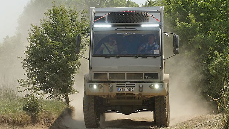 Auch an den Motor legt der Odenwälder Hand an. Im Original kommt der 6,6 Liter große Reihensechszylinder nur auf 180 PS und entsprechend müde Fahrleistungen. Wenn jedoch Pfeifer damit fertig ist, stehen bis zu 300 PS im Fahrzeugschein und der Excap wird fast zu einem Dynamiker. Natürlich kann man ihn weder mit einer Mercedes G-Klasse noch mit einem Porsche Cayenne vergleichen. Doch ein Land Rover Defender zum Beispiel ist nicht wirklich sportlicher. Und wer einmal einen alten VW Bus gefahren hat, der kommt auch mit dem über sechs Meter langen und bald drei Meter hohen Trumm aus dem Odenwald zurecht – die im doppelten H verschachtelte 8-Gang-Schaltung inklusive. Trotzdem sollte man vorher mal einen Blick in seinen Führerschein werfen, mahnt der Firmenchef. Zwar bietet er eine Art Leichtbau-Variante mit weniger als 7,5 Tonnen Gesamtgewicht an, die man zumindest mit dem alten Pkw-Führerschein noch fahren darf. Doch wer spät berufen ist oder bei der Nutzlast keine Kompromisse machen will, der kommt um die Lkw-Fahrschule nicht herum.