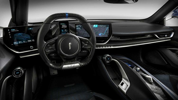 Leistungstechnisch ist der Battista ohnehin sehr weit weg von dem, was man auf normaler Straße abrufen kann. Auf lediglich zwölf Zentimeter Pedalweg lassen sich 1,4 Megawatt und 2300 Newtonmeter Drehmoment freisetzen, was wohl einige Fahrer überfordern dürfte. In weniger als zwei Sekunden sind 100 km/h erreicht, nach nur zwölf Sekunden kann die 300er-Marke fallen. Deshalb hat Pininfarina eine eigene Fahrmodi-Welt für den Battista entwickelt. Auf der linken Seite ist ein ruhiges Programm namens Calma per Drehknopf abrufbar, bei dem der Fahrer keine Angst haben muss, beim beherzten Tritt aufs Gaspedal sogleich in den turbulenten Grenzbereich vorzudringen. Die vier anderen Modi heißen Pura, Energica, Furiosa und Carattere. Der Fahrer hat hier also die Qual der Wahl.