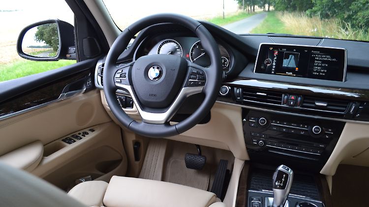Was die Arbeit des Piloten bei einem Kreuzer wie dem X5 deutlich verbessert, sind die Assistenzsysteme, die BMW den Kunden optional an die Hand gibt. Bei einer Fahrzeuglänge von 4,88 Metern und einer Breite von 1,94 Meter macht sich zum Beispiel eine Park Distance Control für 780 Euro immer bezahlt. Auch das Innovationspaket mit Head-up-Display, Spurwechselwarnung, Speed Limit Info und adaptiven LED-Scheinwerfern ist eine echte Option. Nicht aber der Preis von 4200 Euro. Im Testwagen ebenfalls enthalten war das Navigationspaket Connected Drive mit Real Time Traffic Information. Das ist wirklich super. Staus werden umschifft, gesperrte Straßen sind auf dem riesigen 17:9-Monitor farblich gekennzeichnet, Unregelmäßigkeiten des Verkehrsflusses werden bei eingestellter Route automatisch angesagt und sind selbstredend auch farblich gekennzeichnet. Kostenpunkt für die Kompletteinheit sind allerdings 3300 Euro. Eine abgespeckte Version gibt es mit dem Radio Professional bereits ab 390 Euro. Hier ist aber das eben erwähnte Navi nicht enthalten, dafür aber die Möglichkeit, Onlinedienste hinzuzubuchen wie zum Beispiel Napster, Pandora, Glympse oder Deezer.