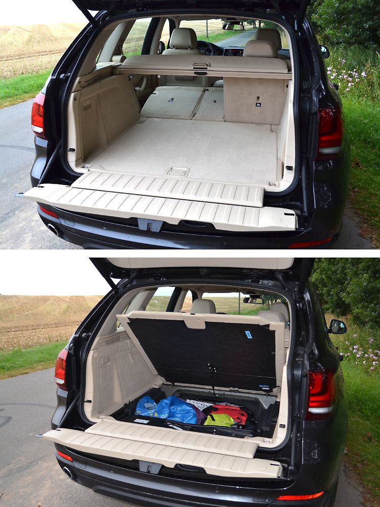 Um zu verhindern, dass das Transportgut in den Fahrgastraum schießt, hat BMW ein Trennnetz in die Gepäckraumabdeckung integriert. Wer noch mehr in den X5 packen will, kann die Rücklehne der Fondsitzbank umlegen und gewinnt so weiter 1120 Liter. Allerdings ist die so erzeugte Ladefläche nicht ganz plan.