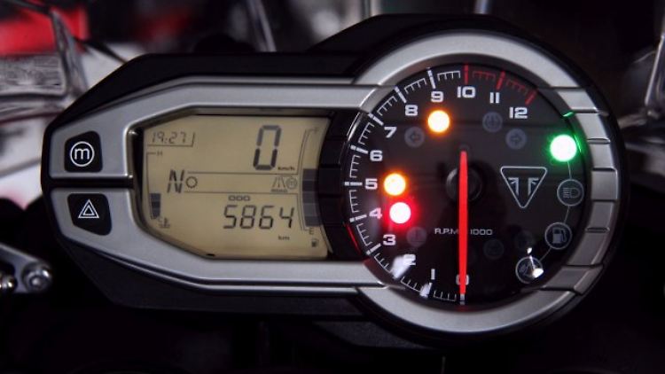 Wir tippen den Starterknopf und werden vom einzigartigen Sound des Dreizylinders umweht. Der erste Gang flutscht mit einem hörbaren Klack rein; die Gasannahme erfolgt weich und jederzeit gut dosierbar. Schon bei niedrigen Drehzahlen nimmt der Drilling sauber Gas an. Seine Drehfreude macht Laune, und der lineare Verlauf der Leistungskurve mag auch der Stolz eines jeden Ingenieurs sein. Der ganz große Wumms fehlt aber - klar, bei 95 PS kann man nicht mehr erwarten. Dafür lassen sich die Gänge leicht und mit guter Rückmeldung durchschalten, und der Drilling verwöhnt die Ohren mit seinem charakteristischen Pfeifen aus der Airbox und ansonsten tadellosen Manieren.