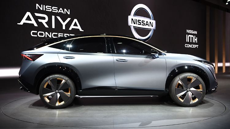 Der Nissan Ariya, der in Tokio noch als Studie zu sehen ist, soll in Zukunft den Leaf ablösen.