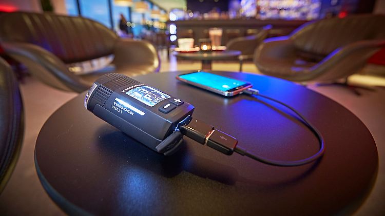 Eine herausnehmbare Batterie gibt es bei diesem Trelock-Scheinwerfer nicht mehr. Der integrierte Lithium-Ionen-Akku lässt sich ausschließlich über das mitgelieferte USB-C-Kabel wie ein Smartphone laden. Das kann drei bis vier Stunden dauern. Selbst wenn man Ladekabel oder ein Netzteil vergisst - Trelock liefert letzteres übrigens nicht mit - wird man meist irgendwo schnell Ersatz finden, denn der Ladestandard ist ja allgegenwärtig. Als Besonderheit lässt sich der Scheinwerfer auch als Powerbank einsetzen. Wenn Not am Mann ist, erlaubt ein ebenfalls mitgelieferter Adapter das Laden eines Telefons mit dem in der Leuchte gespeicherten Strom. Mit 700mA Ladestrom geht das sogar erfreulich flott.