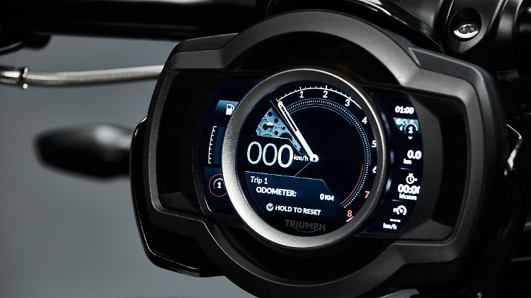 Obwohl die Rocket III eine gewisse archaische Ausstrahlung hat, bietet sie doch einige moderne Ausstattungsdetails. Dazu gehört etwa ein Cockpit mit großem TFT-Display, welches fahrrelevante Informationen in verschiedenen Designs anzeigen kann. Dank Bluetooth-Konnektivität lassen sich Smartphone oder eine GoPro-Kamera koppeln. Diese können via USB-Buchse mit Strom versorgt und außerdem per Schalter am Lenker ferngesteuert werden. Auch LED-Leuchten vorne und hinten, Tempomat, Kurven-ABS, Reifendruckkontrolle oder das schlüssellose Starten gehören zum Technikarsenal der TFC.