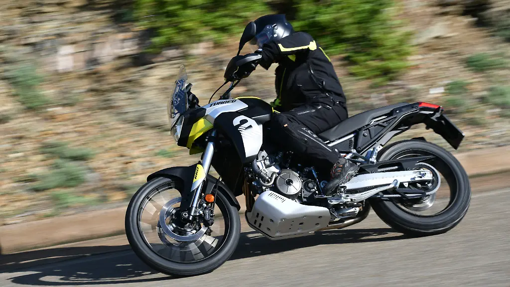 Bereits an diesem Punkt zeigt sich, dass man in Noale an der Elektronik-Ausstattung nicht gespart hat. Bis auf ein schräglagenfähiges ABS ist alles an Bord, was derzeit in dieser Klasse sinnvoll und machbar ist: vierstufige Traktionskontrolle, Tempomat, dreistufige Motorbremskontrolle. Dazu gibt es drei Motormappings. Der Quickshifter ist optional: Er funktioniert in beide Richtungen ausgezeichnet. Vier Fahrmodi stehen zur Wahl; zwei für die Straße, ein Modus für Offroad, wobei die Leistungsentfaltung sehr sanft gestaltet ist.