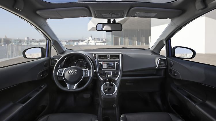 Ansonsten bietet der Innenraum solide Serienqualität, wie man sie vom größten Automobilhersteller der Welt erwarten darf. Den gerade in Deutschland häufig geäußerten Wunsch nach besserer optischer und haptischer Materialanmutung bei Toyota erfüllt dieses Modell teilweise. Für einen Kleinwagen fühlen sich zumindest die ab der Version "Life" eingesetzten Materialen ausgesprochen gut an. Neu ist das Multimedia-System "Toyota Touch" mit 6,1 Zoll großem Farbdisplay für die Bedienung des Radios/CD-Spielers sowie Bluetooth-Schnittstelle zum Mobiltelefon und USB-Anschluss. Das dazu passende Navigationssystem steht ab Juni zum Preis von 550 Euro zur Verfügung.
