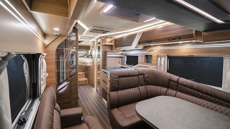 Der 3-Achser wird als Sun I900 LEG mit Einzelbetten im Heck oder als I900 LX mit Queensbett angeboten. Die Doppelbett-Variante überrascht mit einer nicht alltäglichen Raumbad-Architektur, bei der das Waschbecken mittig vor der Trennwand zum Schlafgemach angeordnet ist. In beiden Varianten ist noch ein raumhoher Kleiderschrank an Bord. Zwei weitere Schlafplätze stehen im Bug-Hubbett zur Verfügung. Der Sun I geht zu Preisen ab 113.000 Euro (inklusive 16 Prozent Mehrwertsteuer) im Spätsommer in den Handel.