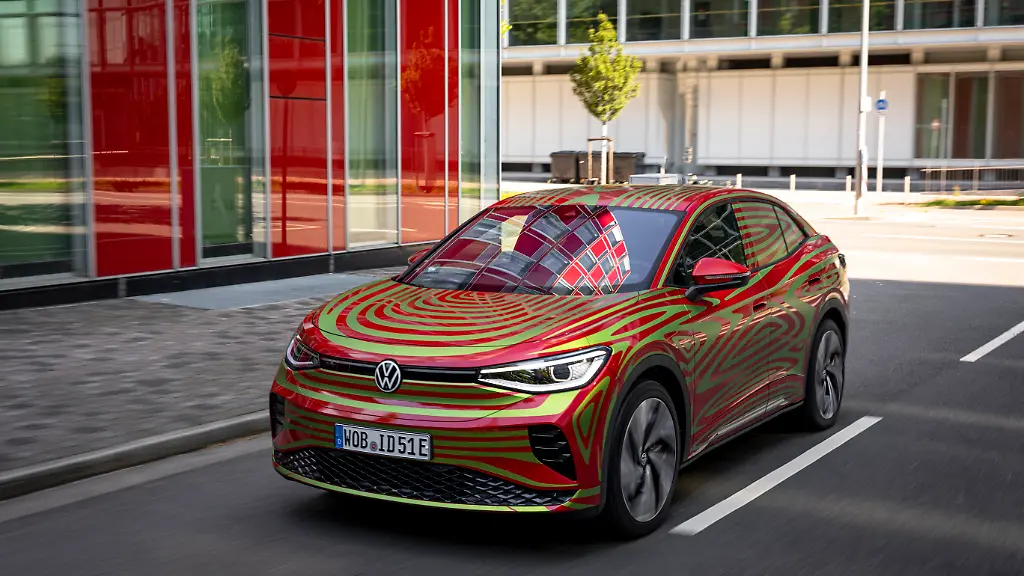 Alleine dürfen die anwesenden Journalisten mit dem neuen vollelektrischen Volkswagen ID.5 noch nicht auf die Straße, aber sie können immerhin schon eine Runden mit einer Vorserienversion des SUV-Coupés drehen. Auch wie das 4,61 Meter lange SUV im Detail aussieht, verschleiern die Wolfsburger. Wirklich versteckt ist aber nur der Innenraum. Der ist so abgedeckt, dass die Passagiere lediglich auf den großen Monitor mit berührungsempfindlicher Oberfläche schauen können.