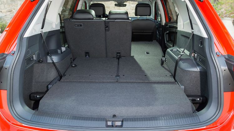 Wer den langen Tiguan als Fünfsitzer bestellt, also auf die dritte Sitzreihe bewusst verzichtet, dem stehen 760 Liter Ladevolumen zur Verfügung. Werden die Rücksitzlehnen per Fernentriegelung vom Kofferraum aus flach gemacht, wächst der Stauraum auf 1920 Liter. So viel Platz bieten viele Kombis selbst in der oberen Mittelklasse nicht. Mit der dritten, unterm Ladeboden versenkten Sitzreihe, bleiben immer noch 700 Liter übrig, respektive 1775 Liter bei umgelegten Lehnen. Beiden Versionen gemeinsam ist die Laderaumlänge von 1,92 Meter. Zur Not kann also im Allspace übernachtet werden – gleich neben dem Surfboard.