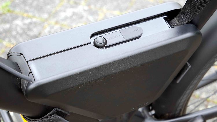 Die Zusatzbatterie des VanMoof S3 sitzt im Rahmen und hat eine Füllstandsanzeige.