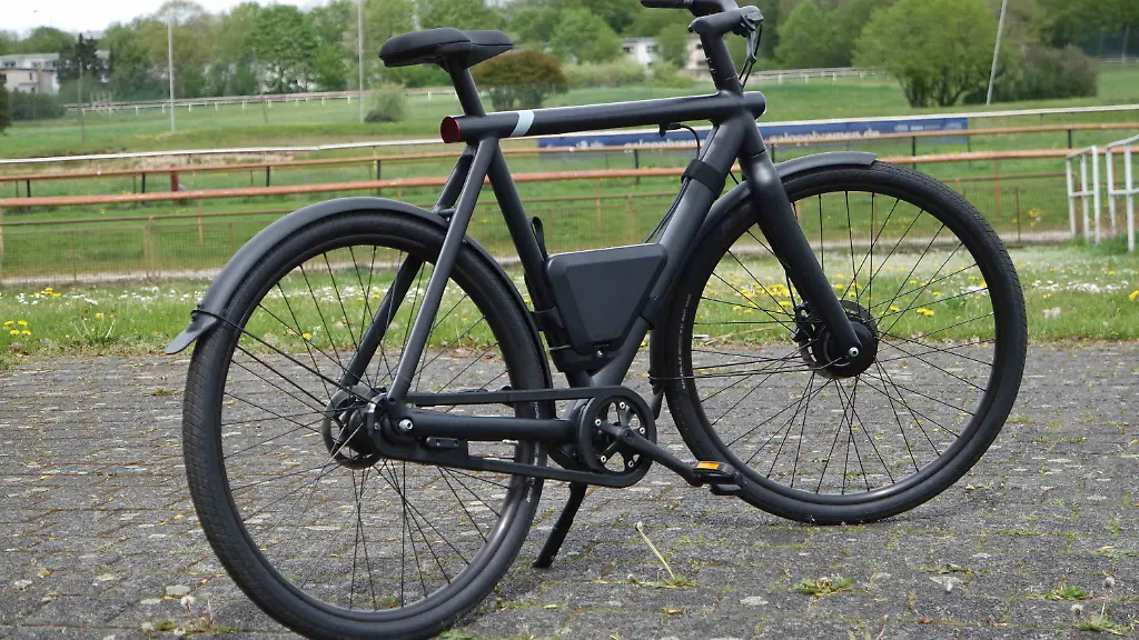 Optisch ist das S3 ein kurioser Mix. Irgendwie wirkt es wie ein altes Rad, das es so von Weitem betrachtet auch schon vor 100 Jahren hätte geben können. Zugleich ist es stylisch und modern, was sich etwa am überlangen Oberrohr mit integrierten Front- und Rückleuchten zeigt, was auch das besondere Erkennungsmerkmal der Marke ist. Was außerdem ins Auge fällt, ist die bis in jedes Detail konsequente Einfärbung in Schwarz. Schwärzer als das schwarze S3 im Test geht es nicht.