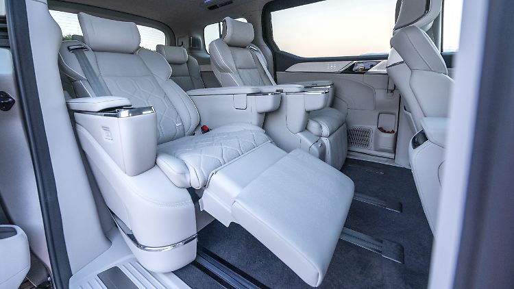 Weniger protzig ist dagegen der Antrieb. Denn auf dem Papier wirken die 272 PS des Heckmotors eher bescheiden bei einem Gewicht von 2,8 Tonnen. Doch mit der wie immer beim E-Motor fast explosiven Drehmomententwicklung reichen die 343 Nm allemal für ein dynamischeres Fahrverhalten, als es den Insassen in einem Van womöglich lieb ist - erst recht, wenn sie ganz lässig in ihren Loungeliegen lümmeln.