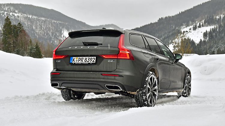Schöner ist es dann schon, vor allem an Steigungen, in Bewegung zu bleiben und zu beobachten, wie schnell die Software entscheidet, welches Rad die Führung übernehmen muss, damit der Cross Country in der Spur bleibt. Ja, das ist jetzt kein Alleinstellungsmerkmal der Schweden. Auf diese Art und Weise funktioniert prinzipiell jeder variable Allradantrieb. Im normalen Straßenbetrieb handelt es sich also auch beim V60 Cross Country um einen Fronttriebler, der bei Bedarf aber auch mit prozentual mehr Kraft von hinten schieben kann. Was bei ausgeschalteten ESP im Schnee natürlich auch für spaßige Drift-Einlagen sorgen kann. Allerdings sollte, wer es ausprobieren möchte, für reichlich Freiraum rund um das ausbrechende Heck sorgen. Andernfalls kann es, wenn die Rückführung des Fahrtzeugs in der Pendelbewegung verpasst wird, zu unschönen Dellen im Blech kommen.