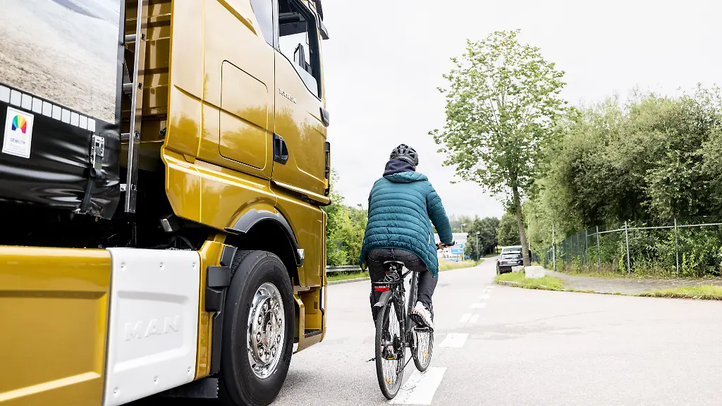 Bei Kollisionen mit Lkw sterben in Deutschland jährlich etwa 70 Radfahrer, 665 werden schwer verletzt. Jeder dritte dieser Unfälle war ein Abbiegeunfall mit einem Radfahrer im toten Winkel. Wir zeigen mit der Hilfe des ADAC, was Abbiegeassistenten bringen.