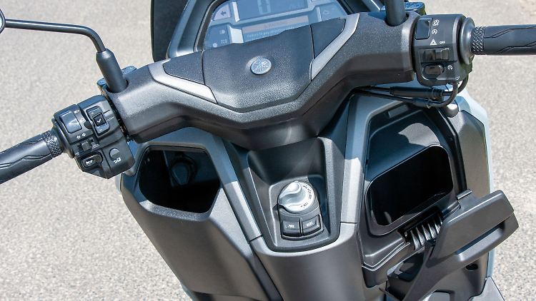 Mit Druck auf den Anlasserknopf springt das Euro5+-Aggregat spontan und fast unmerklich an, denn die Starter-Lichtmaschinenkombination macht den Startvorgang geräuscharm und sehr sanft. Motor und Fahrwerk entsprechen dem Basis-NMAX, damit erfreuen sich die vier Ventile der variablen Einlasssteuerung VVA. Die bewirkt ein fülligeres Drehmoment unten herum bei hoher Leistungsausbeute im oberen Drehzahlbereich, allerdings liegen gerade mal 12,2 PS und 11,2 Newtonmeter deutlich unter den für Leichtkraftroller erlaubten 15 PS.