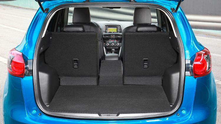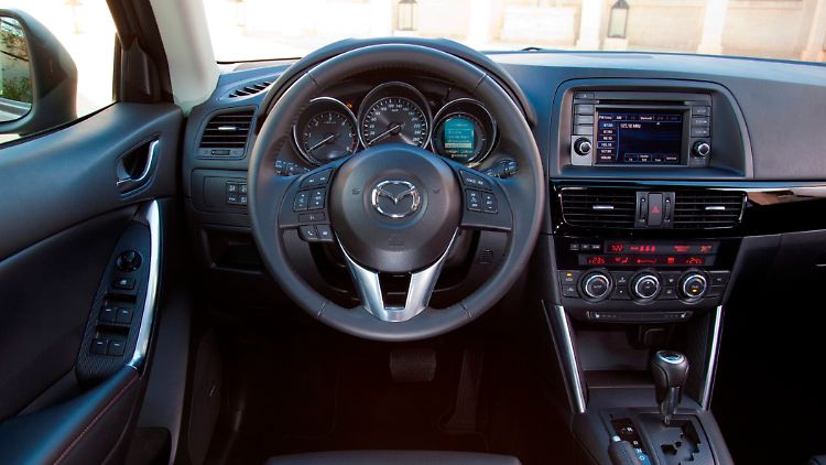 Das Kofferraumvolumen variiert zwischen 503 und 1620 Litern. Die im Verhältnis 40:20:40 geteilte Rückenlehne lässt sich einfach mittels der seitlichen Hebel flach nach vorn klappen. Der Arbeitsplatz ist übersichtlich gestaltet. Die Steuerung des Audio-, Navigations- oder Freisprechsystems erfolgt über einen, griffgünstig platzierten zentralen Dreh-Drück-Knopf in der Mittelkonsole. 2015 erhielt der CX-5 ein Facelift. Die überabeiteten Modelle haben unter anderem einen geänderten Kühlergrill sowie einen modifizierten Innenraum.