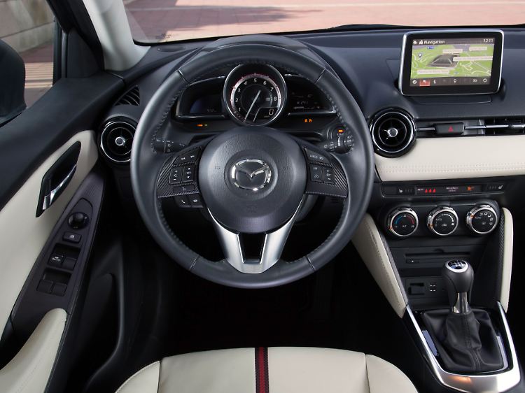 Auch beim Assistentenumfang kann man nachlegen und Helfer wie Müdigkeitserkennung, 360-Grad-Kamera, Fernlicht-, Spurhalte- und Spurwechsel-Assistenten oder ein City-Notbremssystem mit Fußgängererkennung ordern. Beim EuroNCAP-Test 2015 erreichte der Mazda2 vier von fünf Sternen.