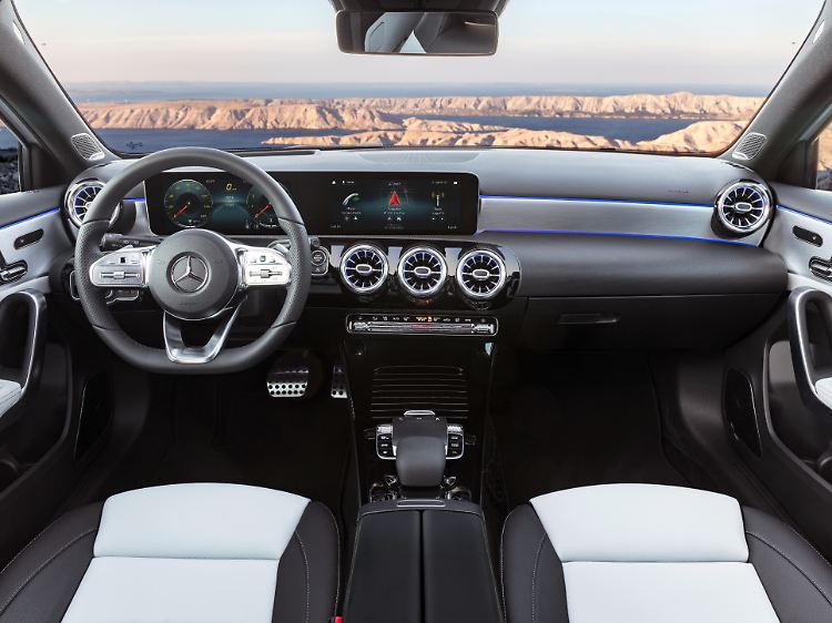 In der aktuellen A-Klasse feierte das Infotainmentsystem MBUX samt Sprachsteuerung ("Hey, Mercedes") und zwei großen Displays Premiere. In der Mittelkonsole gibt es noch ein paar wenige Schalter wie etwa für die Klimaanlage, alles andere wird über zwei kleine Sensortasten am Lenkrad und über ein Touchpad vor der Armlehne bedient. Je nach Ausstattungsvariante und Bereitschaft der Erstkäufer, in Extras zu investieren, geht es innen und außen mehr oder weniger edel zu.