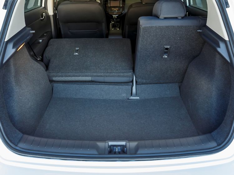 Mit einer Länge von fast 4,40 Meter gehört der Pulsar zu den längeren Modellen im Kompaktsegment: Zum Vergleich: Der VW Golf (VII) streckte sich in der Länge auf 4,26 Meter. Die fünftürige Nissan-Schräghecklimousine ist unauffällig gezeichnet, sie polarisiert nicht. Punkten kann der Japaner mit inneren Werten. Das Platzangebot fällt vergleichsweise üppig aus. Im Fond können sich die Nutzer über reichlich Abstand zu den Lehnen der Vorderleute freuen. Das Kofferraumvolumen variiert je nach Stellung der Rücksitzlehnen zwischen 385 und 1395 Litern. Variabilität wurde aber bei der Entwicklung des Pulsar klein geschrieben; es gibt weder eine verschiebbare Rückbank noch einen doppelten Boden fürs Gepäckteil. Der Innenraum ist funktional und sachlich gestaltet, Schalter und Taster sind sinnvoll geordnet und gut erreichbar.