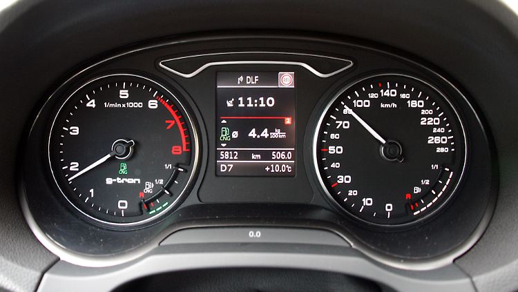 Mit der im Testwagen verbauten 7-Gang-S-tronic harmoniert der Bi-Fuel-Motor sehr gut. Am Temperament gibt es nichts auszusetzen, zumal ja etwas weniger Leistung zur Verfügung steht, als im vergleichbaren Mono-Sprit-Modell. Dank der 200 Newtonmeter Drehmoment, die schon ab 1500 Umdrehungen genutzt werden können, spurtet der Gas-A3 munter drauflos. Nur nach oben geht ihm etwas die Puste aus, mit viel Glück und langem Anlauf erreicht der Tacho-Zeiger die 200-km/h-Marke.