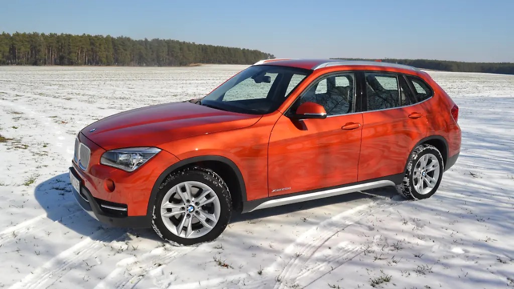 Unter der Haube arbeitet das potenteste Dieseltriebwerk, mit dem der Bayer aufgerüstet werden kann. Der Zwei-Liter-Motor leistet dank Doppelturbo satte 218 PS und wuchtet 450 Newtonmeter auf beide Achsen, wobei der permanente Allradantrieb für ein flottes Fortkommen sorgt. Zusammen mit der optional für 2150 Euro teuren Achtgang-Automatik ist der X1 ein herrlich fahraktives Auto. In nur 6,8 Sekunden fliegt das Kraftpaket ohne spürbare Verzögerungen bei den Schaltvorgängen an der 100 km/h-Marke vorbei und jagt ohne ein Anzeichen von Schwäche bis auf Tempo 230. Auch dann, wenn sich der Frühling als Winter entpuppt, fräst sich der blau-weiße Kraftmeier mit solcher Leichtigkeit über Schnee und Eis bedeckte Pisten, dass Fragen nach dem Geläuf gar keine Rolle mehr spielen. Denn während die frontgetriebenen Kollegen sich rechts halten, zieht der X1 25d links souverän vorbei. Traktionsverluste kennt er nicht, denn in kritischen Situationen greifen die serienmäßigen Helferlein, ohne für großes Aufsehen zu sorgen, sofort ein.