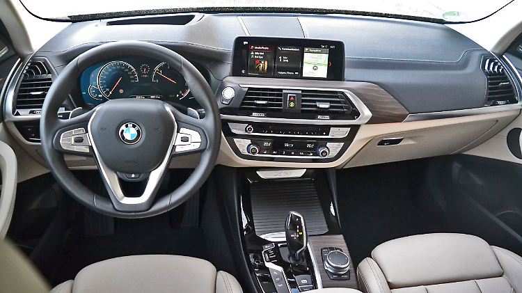 So in die Parkbuchten rangiert, konnte auch die elektrische Heckklappe problemlos aufschwingen, um den 550 Liter fassenden Kofferraum freizugeben, der sich bei umgelegter Rückbank auf 1600 Liter erweitern lässt. Ausreichend große Staufächer gibt es auch in den Türinnentaschen oder in der Mittelkonsole. Überhaupt glänzt der neue X3 im Innenraum durch eine bis dahin nicht gekannte sportliche Eleganz. Auch die verwendeten Materialien sind wertiger als in der Generation zwei und bringen wesentlich mehr Premium-Atmosphäre in den Bayern. Auffällig sind so kleine Details wie das wiederkehrende BMW-X-Logo. Als Prägung findet es sich unter anderem in den vorderen und hinteren Türen sowie an der B-Säule oder unterhalb der Mittelkonsole. Das tut natürlich bei der Funktionalität nichts zur Sache, sieht aber schick aus und soll deshalb an dieser Stelle auch nicht unerwähnt bleiben.