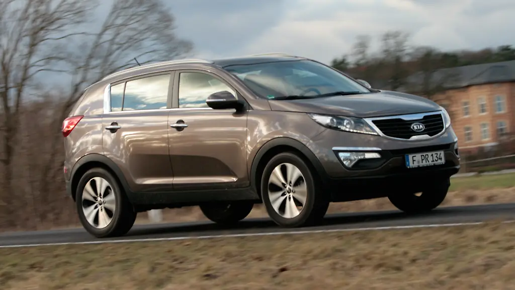 Sieht man von dem fehlenden 6. Gang ab, hat der Kia auch ohne Allradantrieb eine Menge Positives zu bieten. Als Transporter von Einlauf und Reisegepäck macht er eine gute Figur, da die Ladekante mit 77 Zentimetern recht niedrig ist. Die Heckklappe ist so gut gelagert, dass sie mit geringem Kraftaufwand auf- und zuschwingt. Das Umlegen der teilbaren Rückbank gelingt dank der Zugschlaufen bequem und schnell, allerdings wünschte man sich eine ebene Ladefläche – die des Sportage weist einen kleinen Winkel in Richtung der Vordersitze auf. Sind die Rücksitze mit Passagieren belegt, können die sich über recht gute Bewegungsfreiheit freuen. Auch die Dachhöhe gibt keinen Anlass zu Kritik, obwohl das Dach wegen der sportlich-dynamischen Linienführung nach hinten etwas abgeflacht ist.