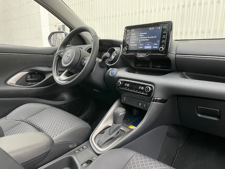 Erstaunlich, dass unter so wenig Blech überhaupt zwei Motoren passen. Immerhin handelt es sich beim Verbrenner zwar um einen kompakt bauenden Dreizylinder, der aber immerhin 1,5 Liter Hubraum aufweist und 92 PS bietet. Und die 80 PS der Elektromaschine sind ein belastbarer Indikator dafür, dass man es mit einem Vollhybrid zu tun hat - die E-Maschine kann den Mazda also auch allein antreiben. Nennenswerte Strecken ohne Verbrenner lassen sich dennoch kaum zurückzulegen, denn extern aufladbar ist der mit lediglich 0,8 Kilowattstunden Kapazität ausgestattete Akku nicht.