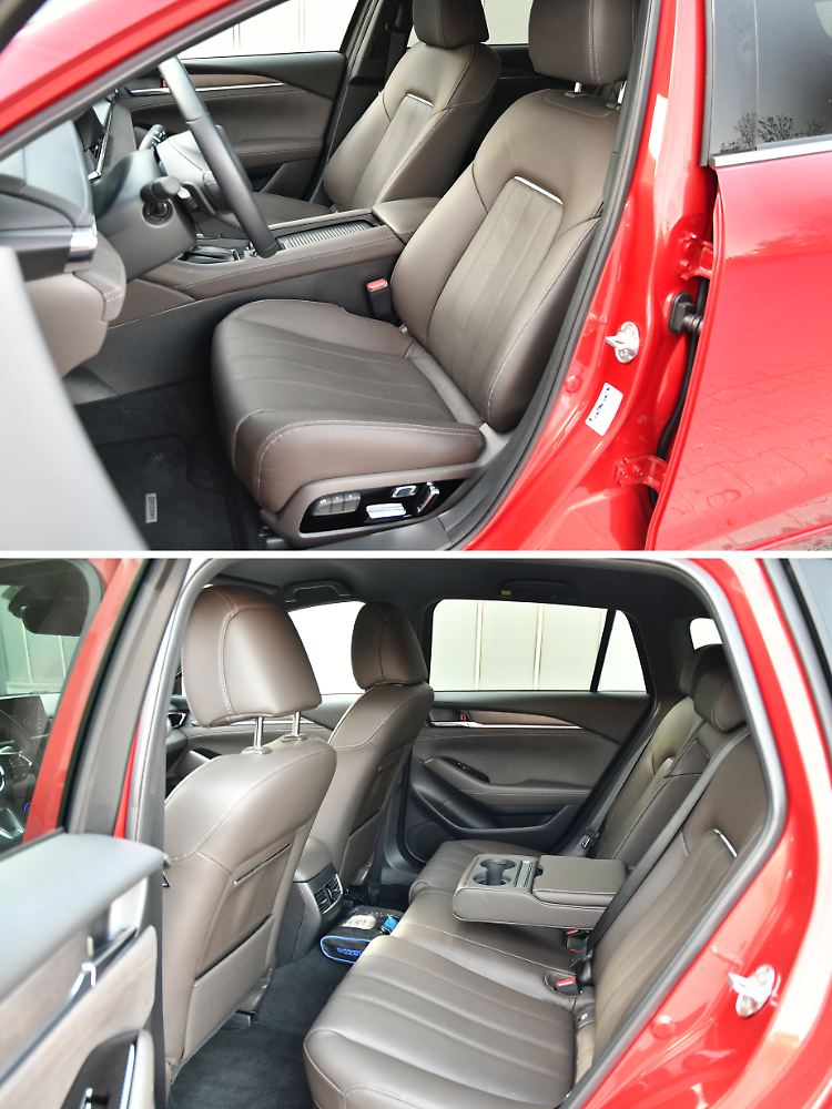 Ansonsten entspannt der Mazda6 seine Insassen im Test zum einen durch die bequemen Lederpolster - die gerne etwas mehr Seitenhalt und für hochgewachsene Personen längere Oberschenkelauflagen bieten dürften -, zum anderen durch ein straffes, aber keineswegs hartes Fahrwerk, das auch mal einen flotten Gang des 4,87 Meter langen Kombis um die Kurve erlaubt. Eine angenehm direkte Lenkung und der Allradantrieb sorgen hier im Zusammenspiel mit den 225er Pneus von Bridgestone auf 19-Zoll-Felgen für guten Grip. Aber damit ist das Entspannungsprogramm noch nicht abgeschlossen. Wer die 47.340 Euro für einen Mazda wie den hier getesteten investiert, der hat auch eine gut funktionierende Flotte von kleinen Helferlein an Deck. Darunter eine adaptive Geschwindigkeitsregelung mit radargestützter Distanzregulierung. Das Tolle daran ist das sanfte Einbremsen beim Auffahren auf den Vordermann und die prompte Reaktion auf seitlich in die Spur einfahrende Fahrzeuge. Ein Umstand, der nicht bei allen Herstellern so problemlos klappt.