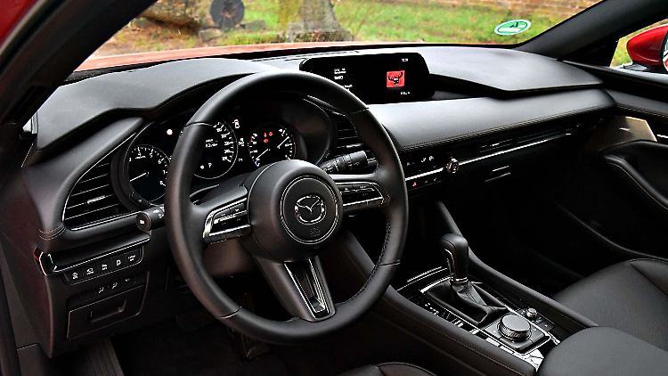 Das Design im Innenraum des Mazda3 ist eigenwillig und irgendwie schick. Hinkt aber unter digitalen Maßstäben, mit Blick auf die Mitbewerber etwas hinterher.