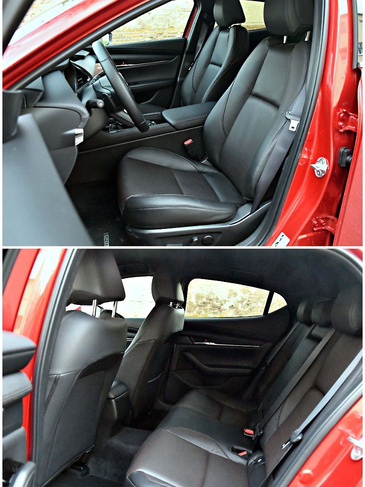Die Sportsitze in der ersten Reihe des Mazda3 verdienen ihre Namen, in der zweiten Reihe geht es für großgewachsene sehr eng zu.