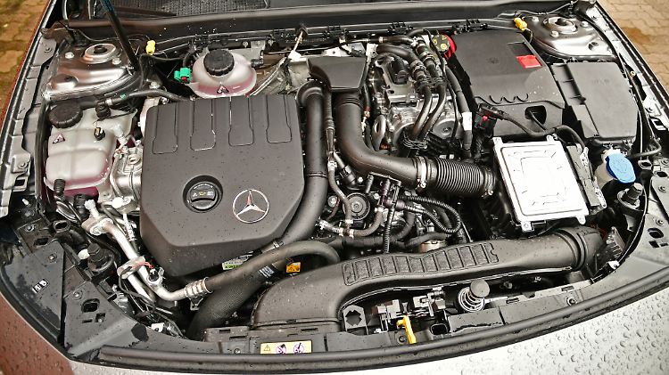 Unter der Haube des Mercedes A 250e ist alles, was den Kompaktwagen nach vorne bringt- außer der Batterie, die über der Hinterachse liegt.