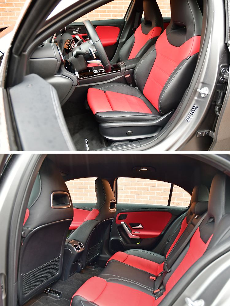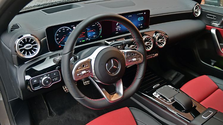 Die Sportsitze mit ihren roten Akzenten sind im A 250e eine Beigabe aus dem AMG-Paket.