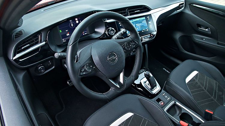 Insofern war Opel auch gezwungen, die in Frankreich entwickelten Motoren für den Corsa zu nutzen. Da gibt es Benzin- und Dieselaggregate in den Leistungsstufen von 75 bis 130 PS und natürlich auch einen mit Elektroantrieb. Für den Test bei ntv.de fiel die Wahl auf die Topmotorisierung mit dem 1,2-Liter-Dreizylinder-Turbo-Benziner mit 130 PS und einem maximalen Drehmoment von 230 Newtonmetern. Ein Treibsatz, der mit den 1,2 Tonnen kein Problem haben sollte. Und das hat er tatsächlich nicht. Wenn auch nicht wirklich spontan auf Gasbefehle ansprechend, schiebt der Dreiender etwas knurrig, aber flott an. Lediglich 8,7 Sekunden dauert es, bis der Corsa auf Landstraßentempo beschleunigt ist.
