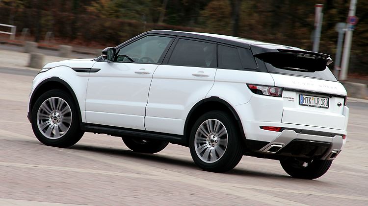 Das Land Rover Allrad kann, braucht die Marke nicht mehr zu beweisen. Mit dem Evoque beweist sie, dass sie auch Design kann. Die bullige Front mit schmalen Scheinwerfer-Augen, die muskulösen Kotflügel über großen Radhäusern, das schmal zulaufende Fensterband und das wie geduckt aufsitzende Dach sind Elemente, die dem Sportwagenbau zugerechnet werden, in der Offroad-Welt jedoch bisher nicht zu finden waren. Die kompromisslose Orientierung aufs Design als Verkaufsargument wird durch die Auswahl ungezählter Lack-, Polster-, Dekor- und Ausstattungsvarianten untermauert. Zweifarb-Lackierung mit dunkel abgesetztem Dach bieten andere Hersteller ebenso wenig an wie 19 Zoll große Leichtmetallfelgen ab Werk (ab "Dynamik").