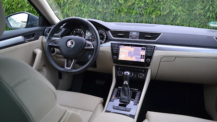 Insofern besteigt man diesen Skoda auch gleich mit einem anderen Gefühl. Das wird auch mit dem Griff an Armatur, Türinnenverkleidungen und den unteren Teil der Mittelkonsole deutlich. Es gibt eigentlich keinen Platz, an dem billiges Plastik verarbeitet wurde. Weich geschäumt oder wenigstens angenehm griffig zeigt sich alles. Natürlich stammt auch die Armatur aus dem VW-Baukasten und ließ den Designern deshalb kaum Raum für Experimente. Alles bleibt sehr klar und funktional, wie im VW Passat.