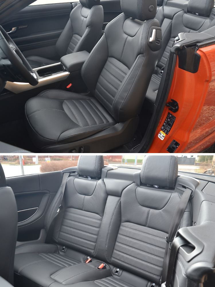 Fangen wir mit den Platzverhältnissen an: Die werfen wie zu erwarten in der ersten Reihe keine Fragen auf. In dem 4,37 Meter langen SUV findet selbst der 1,90-Meter-Mann ausreichend Platz. Die Sitze sind in der Ausstattungslinie HSE Dynamik mit feinem Windsor-Leder bespannt, geben sich ausreichend straff, ohne auf langer Strecke unbequem zu werden und lassen sich im Testwagen auch beheizen. Zudem sind sie elektrisch verstellbar, bieten eine Memory-Funktion, was sie auf Knopfdruck in die Lage versetzt, immer in die richtige Position zurückzufahren. Nicht ganz unwichtig, denn wie bei allen Dreitürern muss das Polster ganz nach vorne gefahren werden, damit die zweite Reihe zu entern ist.