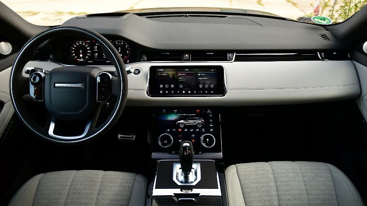 Die Wahrscheinlichkeit, dass man diese Tugenden im Alltag ausreizt, ist allerdings recht gering. Zumal der Evoque, so wie er n-tv.de zur Verfügung gestellt wurde, nicht ganz billig ist. In der Ausstattung R-Dynamic und den damit verbundenen Extras wie 21-Zoll-Felgen, Panorama-Glasdach, LED-Scheinwerfern, dunkel getönten Scheiben, Fernlichtautomatik und einer ganzen Reihe von Hoheitszeichen müssen auf den Grundpreis von 65.700 Euro bereits über 5000 Euro draufgepackt werden. Nimmt man noch das brillante Head-up-Display dazu und elektrisch verstellbare Vordersitze, sind weitere 1300 Euro aufgeschlagen. Für Dynamik, Infotainment und Assistenzsysteme werden 2500 Euro fällig. Unterm Strich stehen dann 74.811 Euro.