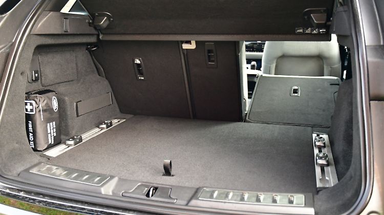 Schade, dass die Ladefläche bei umgelegter Rückbank im Range Rover Evoque nicht plan ist. 1383 Liter Stauraum bietet sie aber auch so.