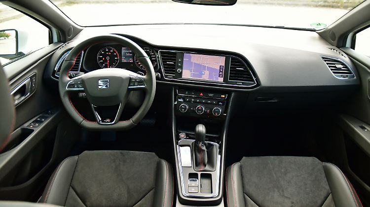 Es gibt aber etwas anderes zu bedenken: Der Leon steht vor einem Modellwechsel. Und so ist das, was hier zum Test vorgefahren ist, an Außenhaut und Innenleben nicht mehr ganz up to date. Denn so, wie der Spanier momentan unterwegs ist, kennt man ihn mit leichten Retuschen bereits seit 2013. Es ist nicht so, dass man zwingend etwas im Seat vermissen würde. Die Sitze sind straff und langstreckentauglich, waren im Testwagen für zusätzliche 560 Euro mit Alcantara bespannt, für 1040 Euro mehr strahlen die Frontscheinwerfer mit LED-Licht und für 310 Euro gibt es ein Fahrassistenzpaket, das neben Abstandstempomat und Spurhalteassistent sogar im Stau hilfreich an Gas und Bremse greift. Auch ein Radio-, Navigations- und Multimediasystem mit Ladeschale fürs Smartphone ist für 220 Euro an Bord.